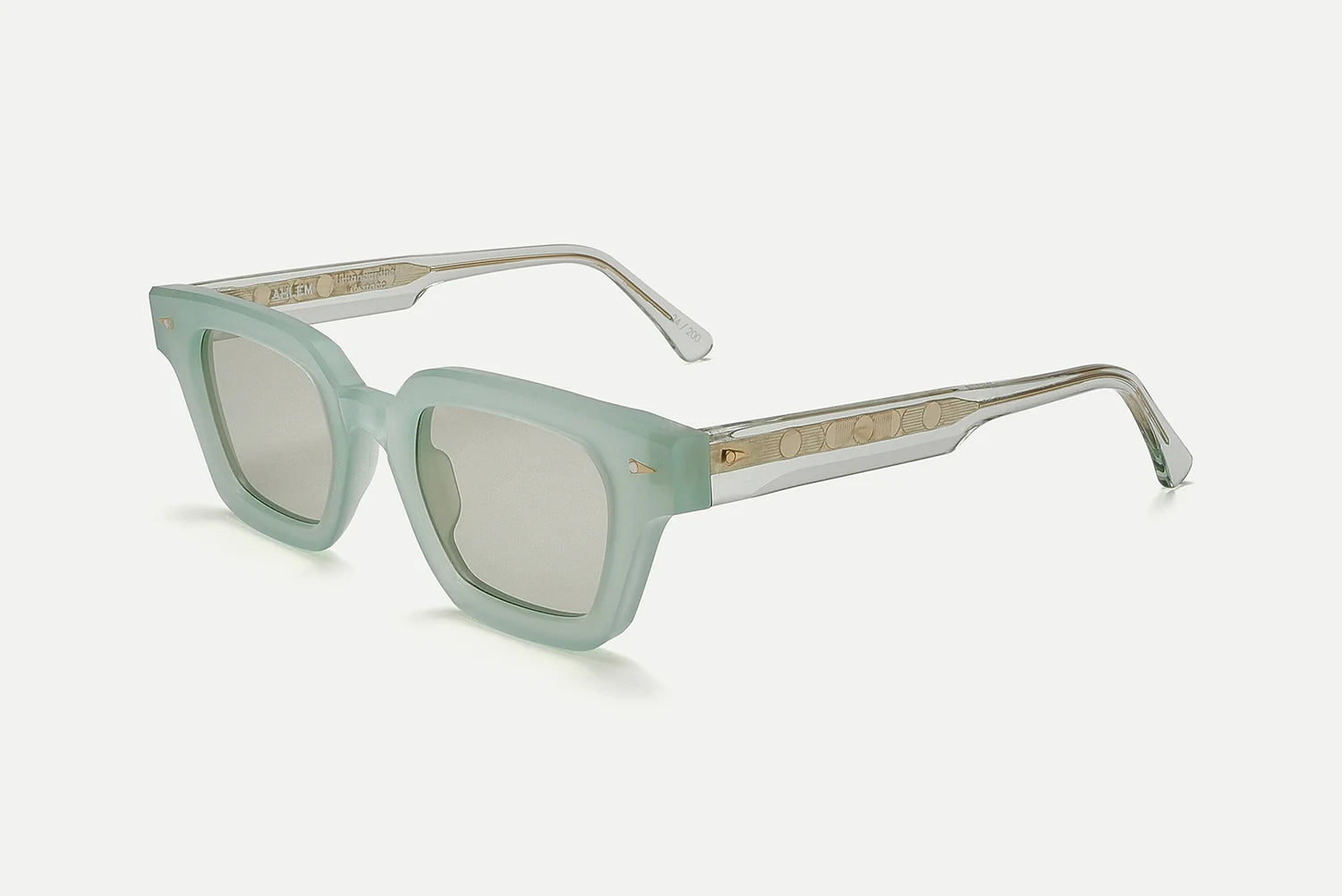 -Temples are 12mm wide with a single raw-cut bevel for a striking contrast between matte and polish