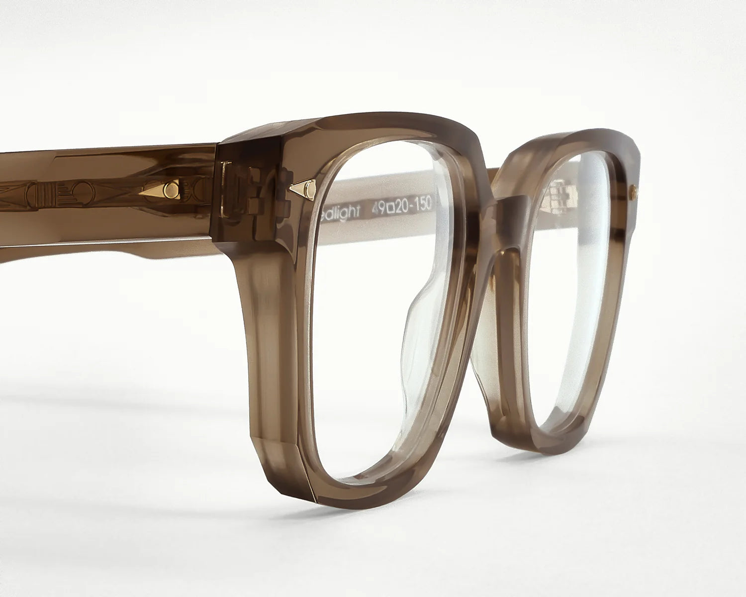 -Temples are 10mm wide with a double raw-cut bevel for a striking geometric temple