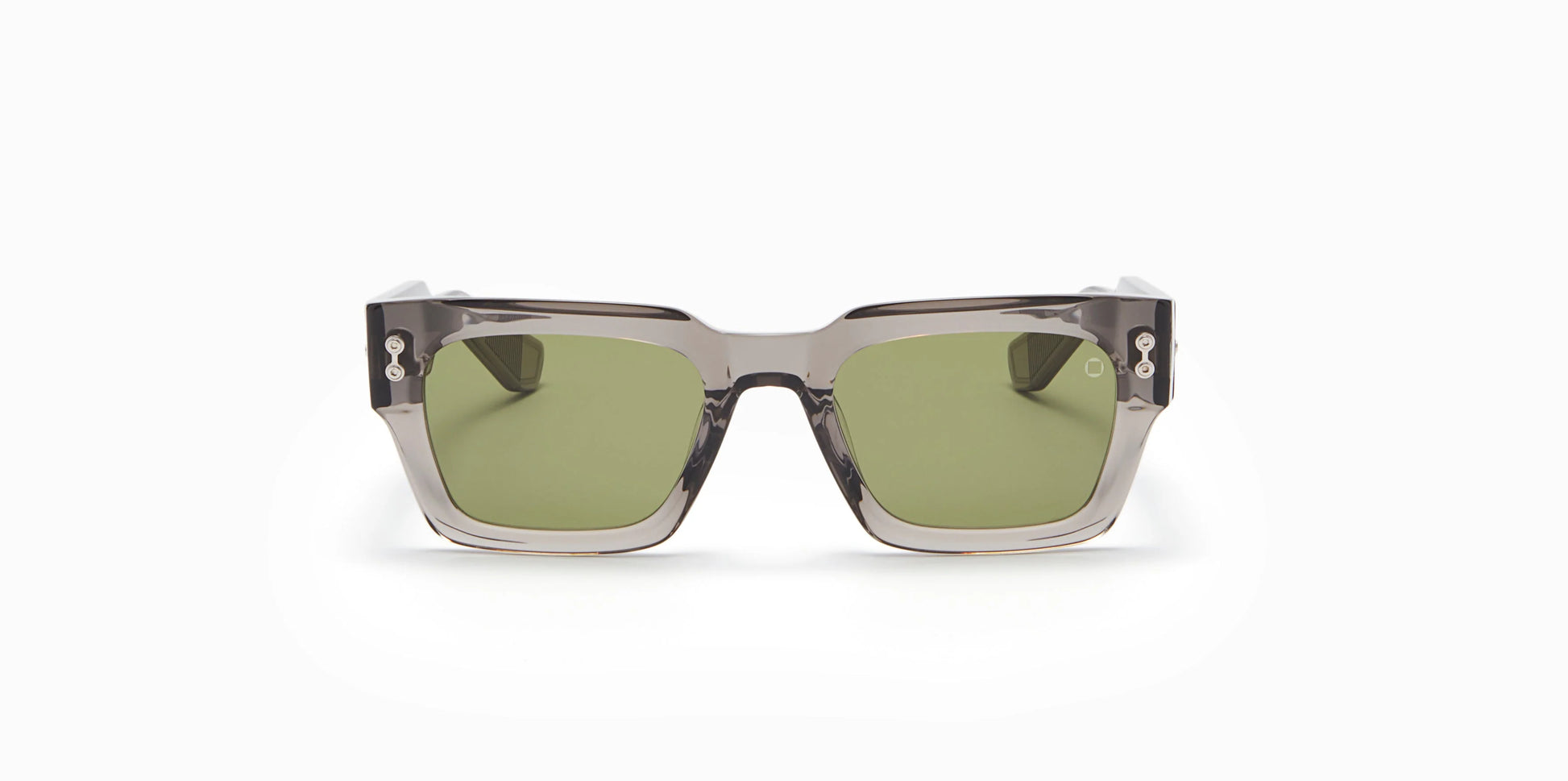 as an intriguing side temple that underlines the singular artisanal skills of Akoni’s famed Japanese craftsmen. Melding together the two signature elements of Akoni—Japan’s finest acetate and titanium—Cosmo’s substantial temples capture the eye, with the sharply sculpted acetate angles channeling light in the mesmerizing manner of kaleidoscopes. Adorned with a branded titanium temple tips topped with the heads of custom Akoni screws, the translucent temples also encase visible titanium cores. Cosmo’s lenses, with their Akoni logo markings and custom rivets, echo the frame’s distinctive side embellishments. Color choices reflect the assured swagger of those who sport a Cosmo, including black rhodium frame with dark-grey highlights and lenses, and a dark-grey crystal frame with black palladium details and dark-olive lenses. A striking new Akoni acetate color for 2024, crystal burgundy, creates an eye-catching frame when paired with white-gold highlights and dark-blue lenses.