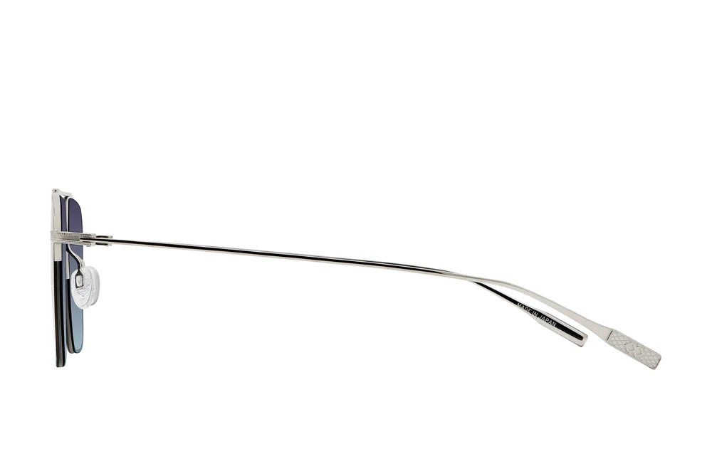 Crafted from ultra-thin Japanese titanium, this design features a sleek double bridge and intricate crosshatch temple details, embodying modern precision. Invisible eyewire technology enhances the minimalist aesthetic. The sunglass option is paired beautifully with Patty Perreira’s signature jewel-tone gradient lenses.