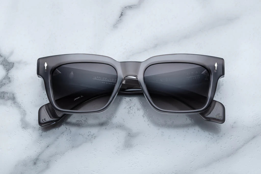 GREY 10MM CURED CELLULOSE ACETATE FRAME CUSTOM DOUBLE LAMINATED ACETATE TEMPLES AND GREY LENSES