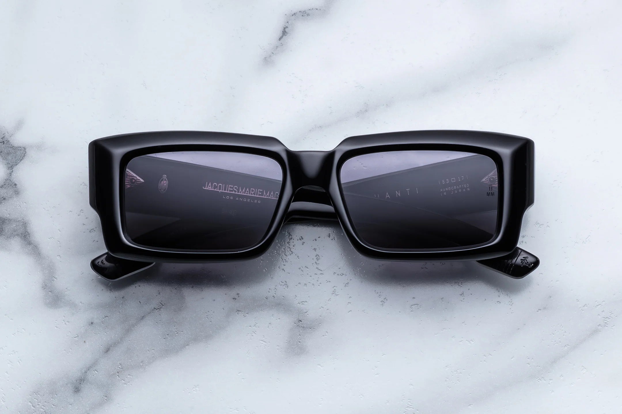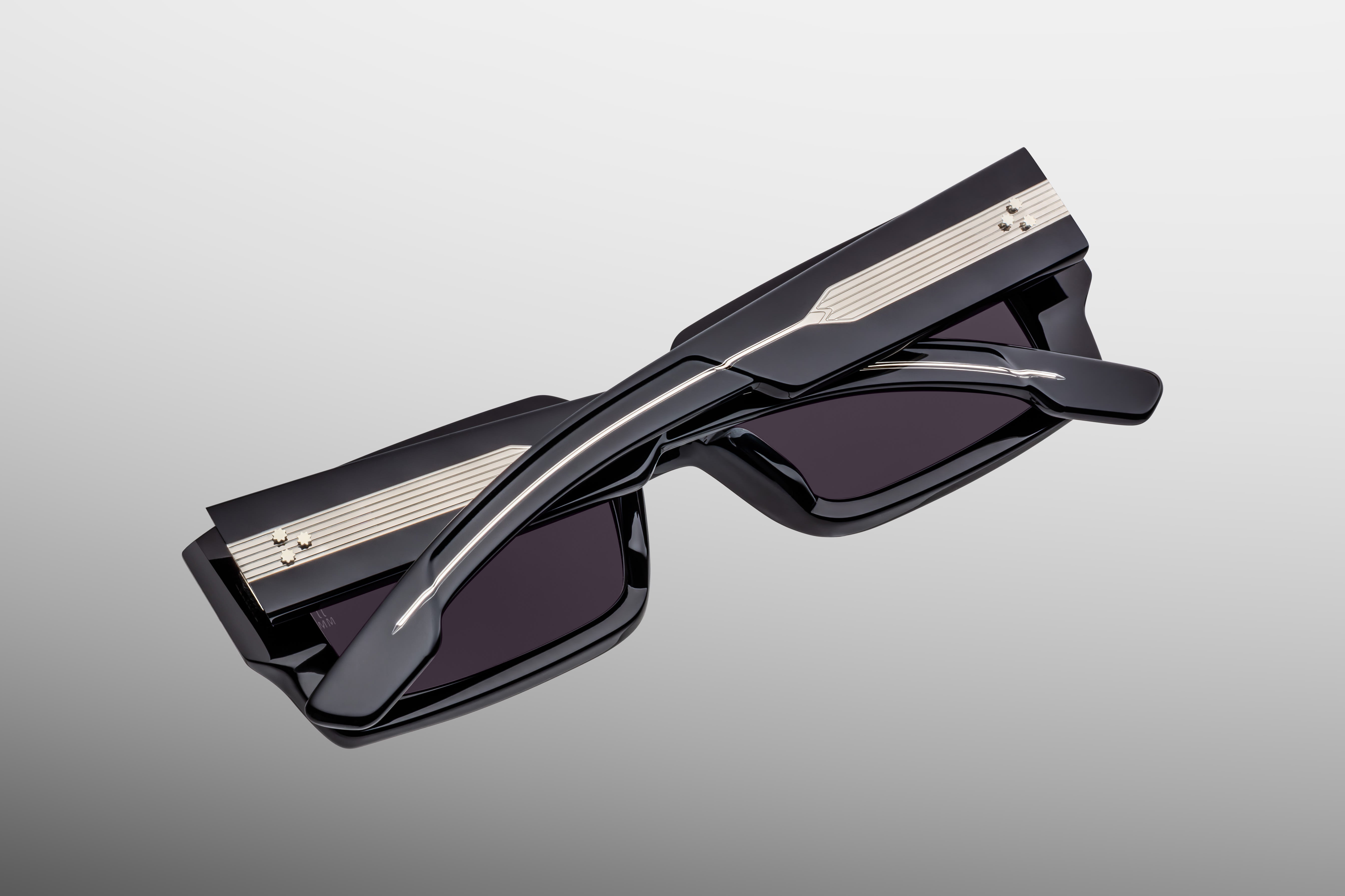 BLACK 10MM CURED CELLULOSE ACETATE FRAME WITH CUSTOM DOUBLE LAMINATED ACETATE TEMPLES AND JET LENSES